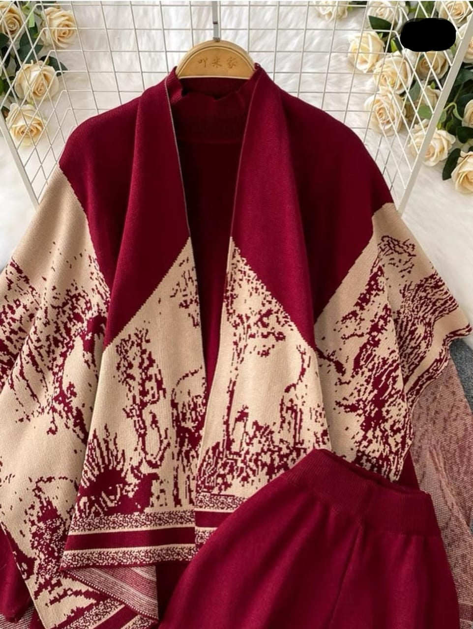 Elevate your wardrobe with this sophisticated three-piece woolen coordinate set. Crafted from premium wool fabric, this versatile ensemble combines comfort with refined style, perfect for layering through cooler seasons. The coordinated pieces work seamlessly together or separately, offering multiple styling possibilities for both casual and semi-formal occasions. Ideal for those who appreciate quality construction and timeless fashion that transcends seasonal trends.