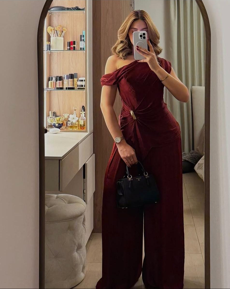 Elevate your wardrobe with the Asymmetric Top and Pants Set FS390, designed for a contemporary and sophisticated look. The uniquely cut top features an asymmetric silhouette that adds dynamic visual interest, perfectly complementing tailored pants for balanced style and comfort. This set offers versatility for both professional settings and chic casual outings, ensuring you stay polished and confident. Crafted with attention to detail, it blends modern design with wearable elegance, making it a refined choice for those who appreciate expert tailoring.