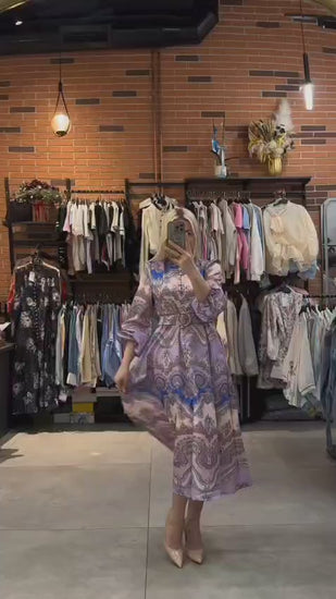 This beautifully printed dress features a flattering silhouette enhanced by a coordinating belt, allowing for a customizable fit. Crafted to combine style and comfort, its vibrant print adds visual interest suitable for various occasions. Ideal for those seeking an elegant yet effortless look, this dress balances tasteful design with practical wearability.