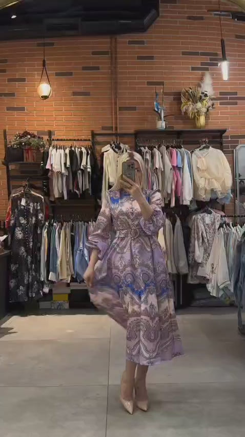 Beautiful Printed Dress With Belt FT366