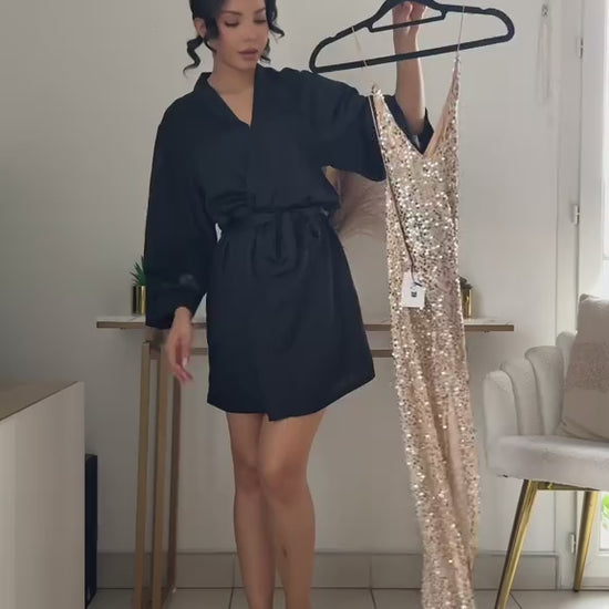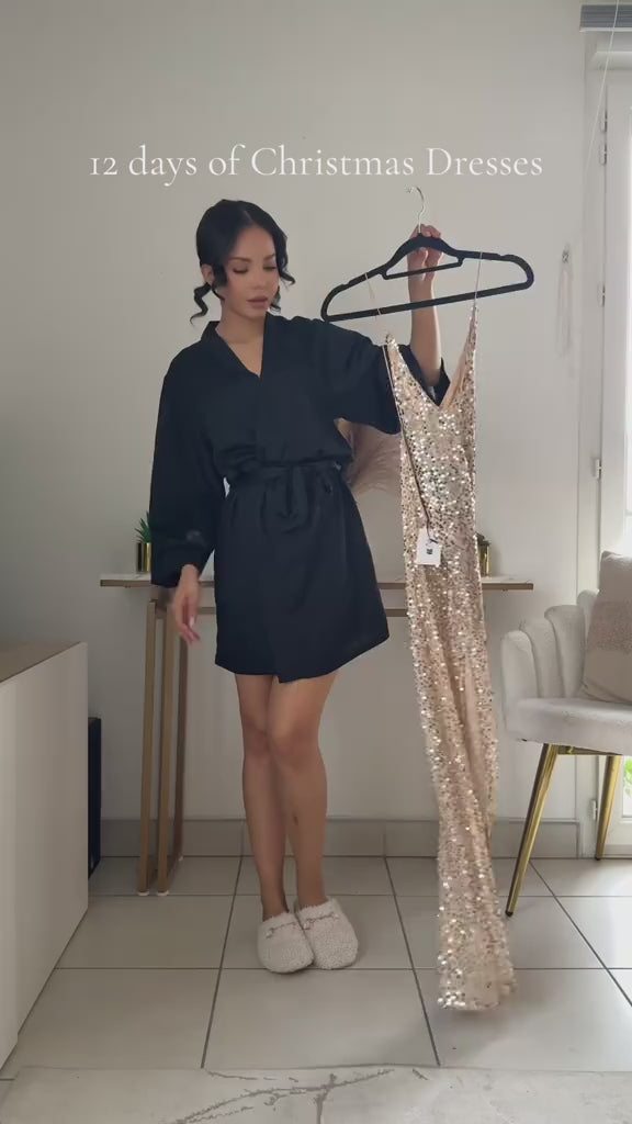 Elevate your evening wardrobe with this stunning sequined dress, a masterpiece designed for those who command attention. The intricate sequencing catches light beautifully, creating an enchanting shimmer with every movement. Crafted with precision tailoring, this piece offers a flattering silhouette that transitions seamlessly from special occasions to upscale celebrations. The expert construction ensures durability while maintaining the luxurious aesthetic that defines sophisticated style. Perfect for weddings, galas, or festive gatherings where you want to make a memorable impression.