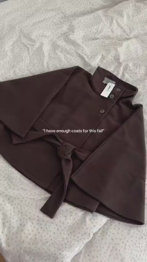 Elevate your wardrobe with this sophisticated belted cape coat, a versatile layering piece that seamlessly transitions from day to evening. The structured silhouette is anchored by an adjustable belt that defines the waist and creates a flattering, polished look. Crafted for those who appreciate timeless elegance, this statement piece drapes beautifully over any outfit, offering both style and practical coverage. Perfect for adding dimension to your ensemble while maintaining an air of refined confidence.
