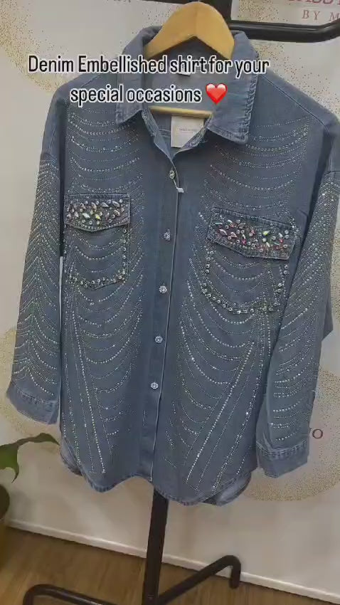 This exclusive Denim Embellished Shirt FT266 combines classic denim durability with refined embellishments for a distinctive look. Designed to fit comfortably up to size 44, it offers a versatile and stylish option suitable for a range of body types. Perfect for elevating casual wear with a subtle touch of sophistication.