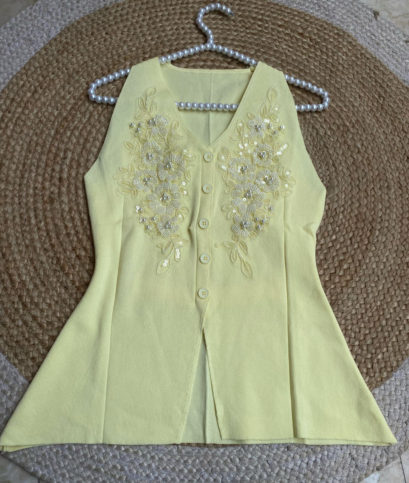 This Embroidered Sleeveless Top FT272 combines stylish design with practical comfort. Crafted with stretchable fabric, it accommodates bust sizes 38 and 40, ensuring a flexible fit. The intricate embroidery adds a refined touch, making it suitable for both casual and semi-formal occasions. Its sleeveless cut enhances breathability and ease of movement, offering a chic yet comfortable wardrobe staple.