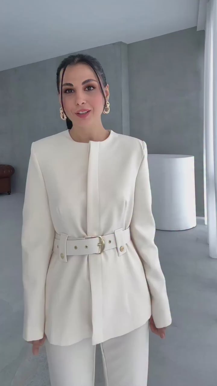 Elevate your professional wardrobe with the Formal Belted Blazer Set FT392. This meticulously tailored set features a structured blazer enhanced by a sleek belt, offering a refined silhouette that combines style with functionality. Crafted for impeccable fit and comfort, it ensures a poised appearance suitable for important meetings and formal events. Perfectly balancing modern design with classic tailoring, this set is an essential piece for those seeking confident, polished elegance.