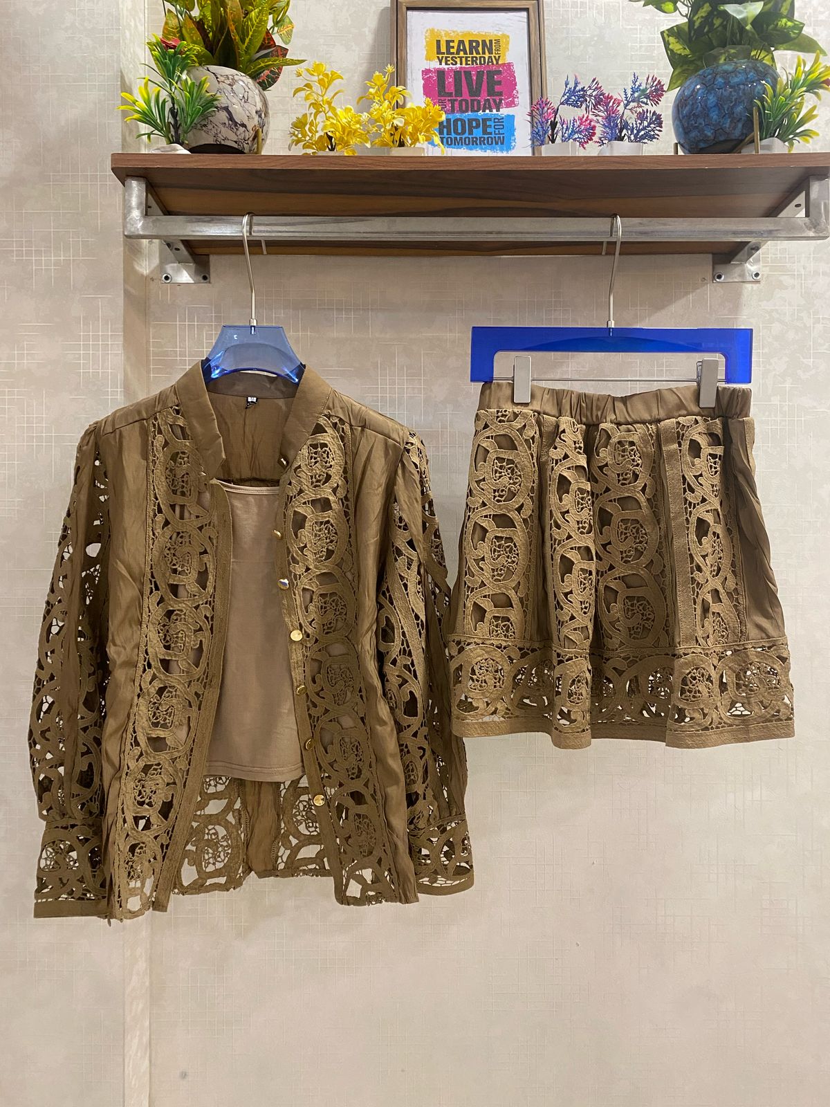 Elevate your wardrobe with the Luxe Crochet Skirt Set With Inner FT216, a sophisticated three-piece ensemble designed for sizes L to XXL (approximate fits 38, 40, 42). This set combines intricate crochet craftsmanship with a comfortable inner lining, ensuring both style and ease of wear. Perfect for those seeking a refined yet versatile outfit, it offers a flattering fit and timeless appeal suitable for various occasions.