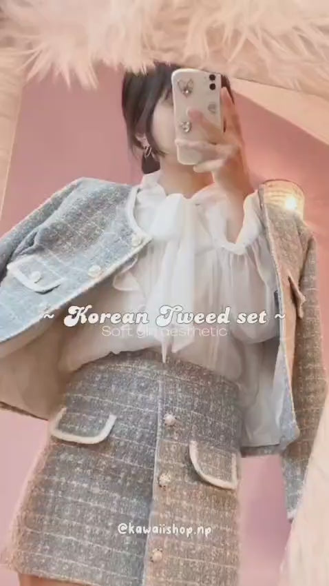 Luxe Tweed Skirt and Jacket Set with Pearl Buttons FT464