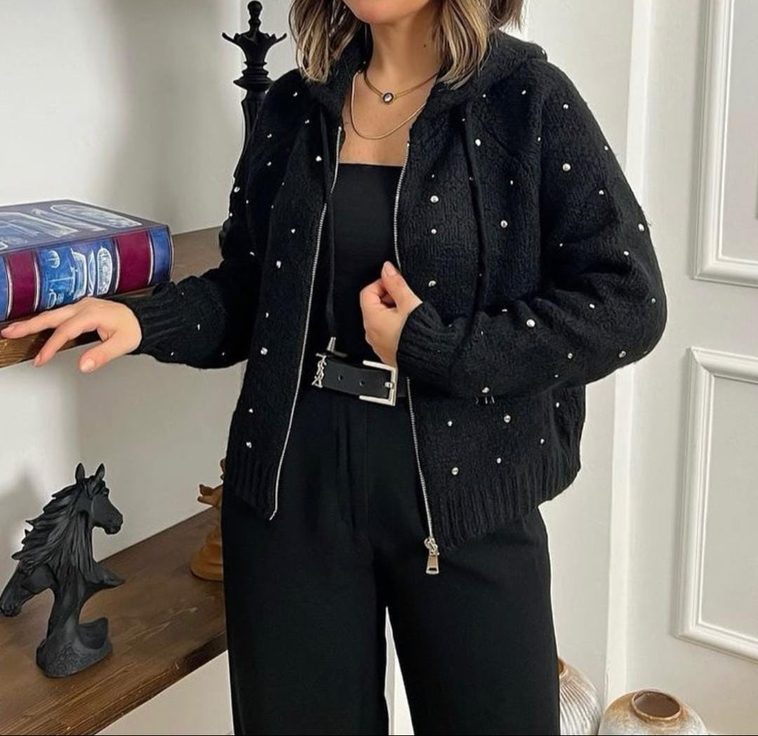 The Metal Pearl Woolen Hooded Zipper FT371 offers a versatile fit from S to XXL, combining warmth and style. Crafted from premium woolen fabric, it features a durable zipper and a comfortable hood for added protection against cold weather. Its metal pearl accents enhance the jacket’s sophisticated look, making it a practical and fashionable choice for cooler seasons. Free size design ensures ease of wear and adaptability to various body types.