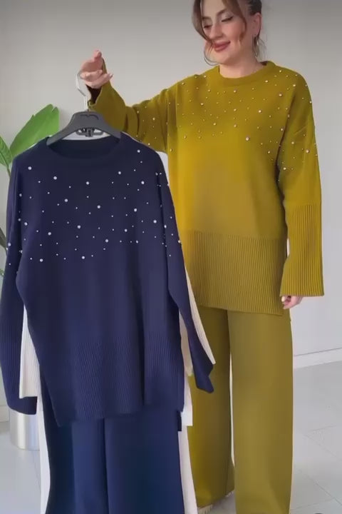 Elevate your wardrobe with this sophisticated pearl embellished coord set, designed for the modern woman who values refined elegance. The delicate pearl detailing adds a luxurious touch to both the top and bottom pieces, creating a cohesive, polished look perfect for special occasions or elevated everyday styling. Crafted with attention to detail, this set offers versatility—wear the pieces together for maximum impact or separately to create multiple outfits. The expert placement of pearls ensures a timeless aesthetic that transcends seasonal trends, making it an investment piece for your collection.