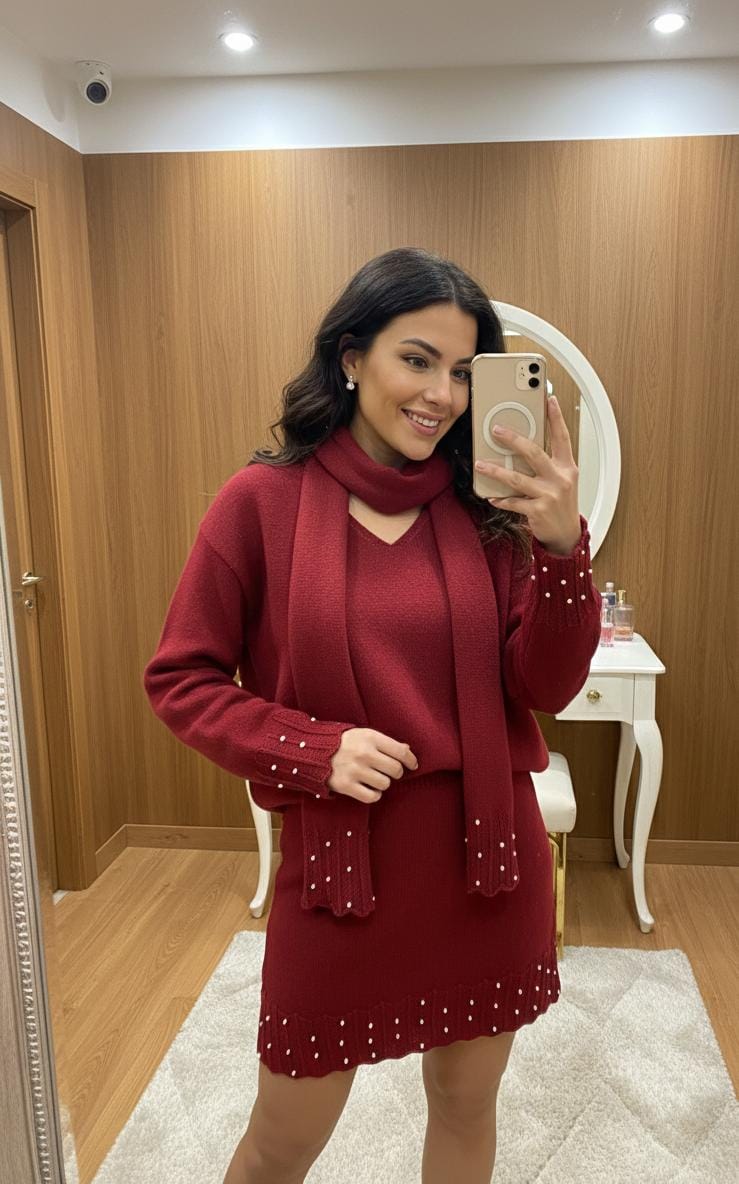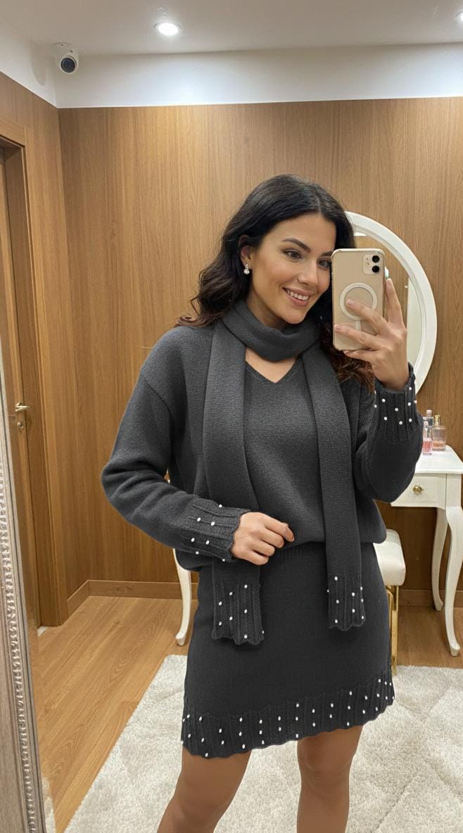 Pearl Skirt Set with Stole FT579