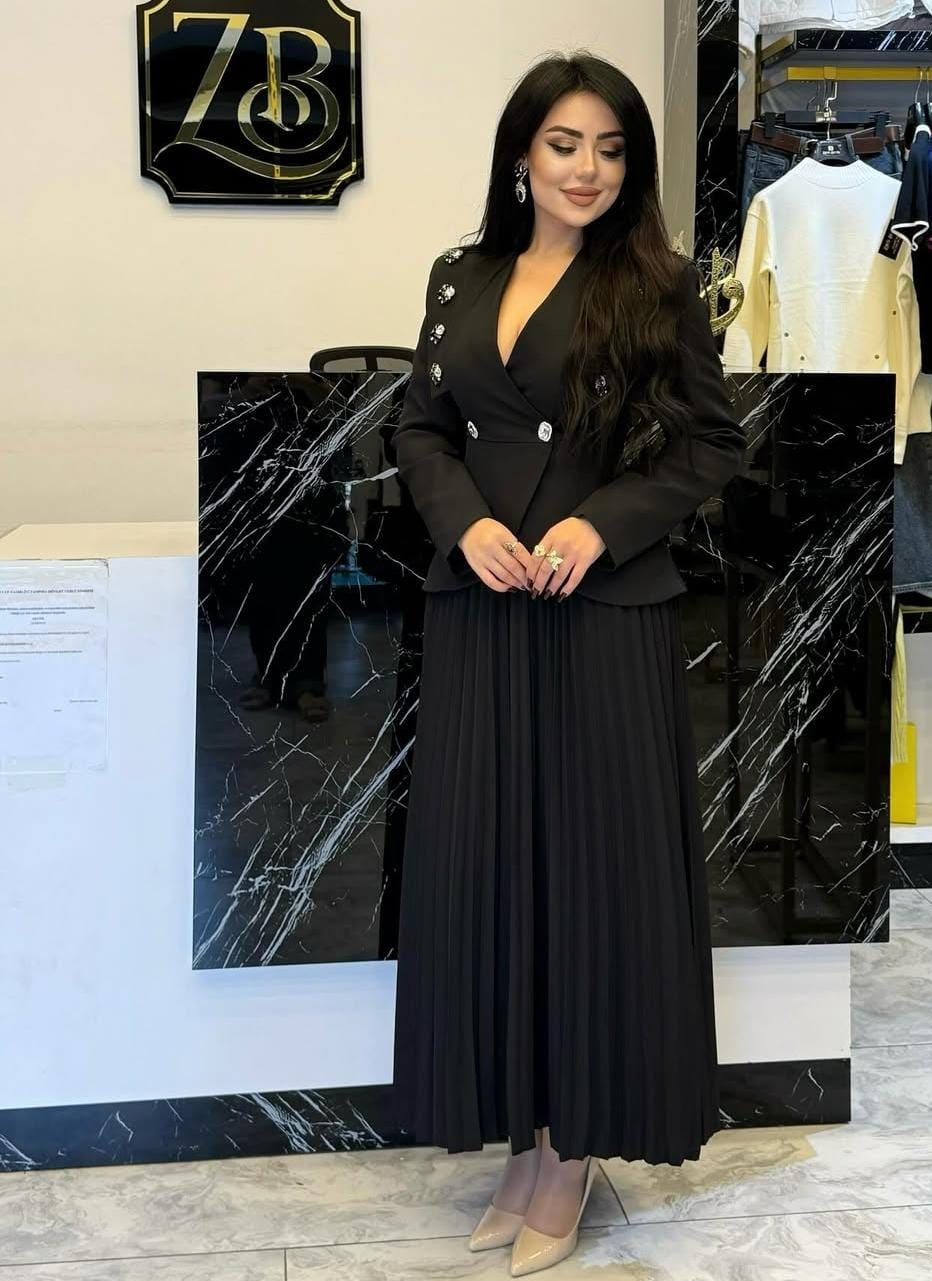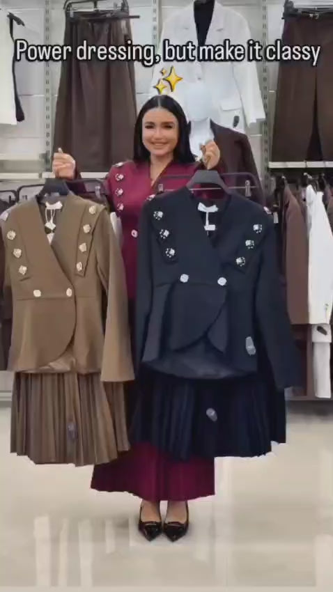 Elevate your professional wardrobe with this sophisticated two-piece ensemble. The tailored blazer features clean lines and structured shoulders that command presence in any boardroom or formal setting, while the coordinating skirt offers refined elegance with a flattering silhouette. Crafted from premium fabric, this set delivers polished sophistication for business meetings, events, and occasions where impeccable style matters. The coordinated design ensures effortless pairing, allowing you to invest in versatile pieces that work seamlessly together or separately with existing pieces in your collection.
