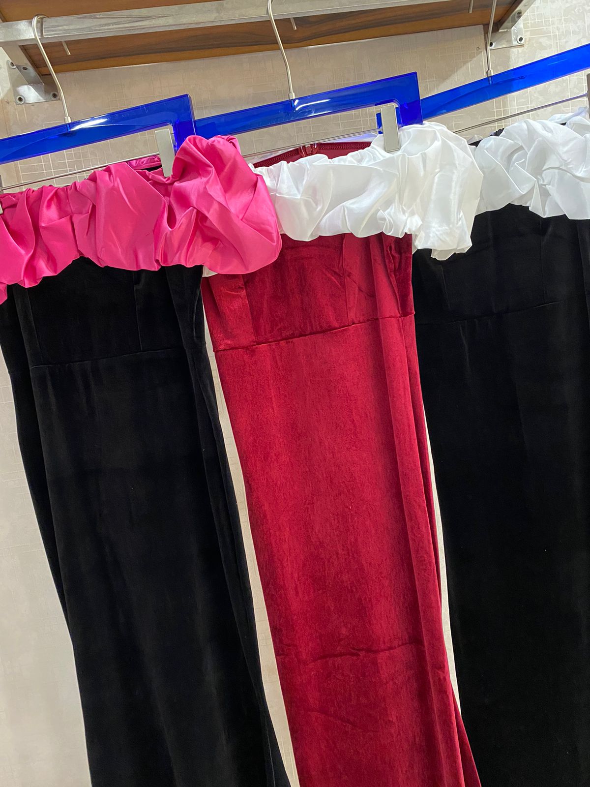 Elevate your evening wardrobe with this exquisite ruffled velvet long gown, a standout piece from our premium collection. Crafted from luxurious velvet fabric with thoughtfully placed ruffles that create dramatic movement and dimension, this gown combines sophistication with contemporary flair. The stretchable construction ensures a comfortable, flattering fit that moves with you throughout the night. Perfect for weddings, galas, and special occasions, this statement gown delivers the refined elegance and quality craftsmanship you expect from The Fashion Tribe's premium range.