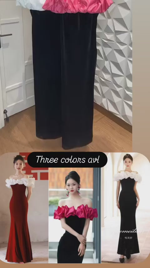 Ruffled Velvet Long Gown FT465